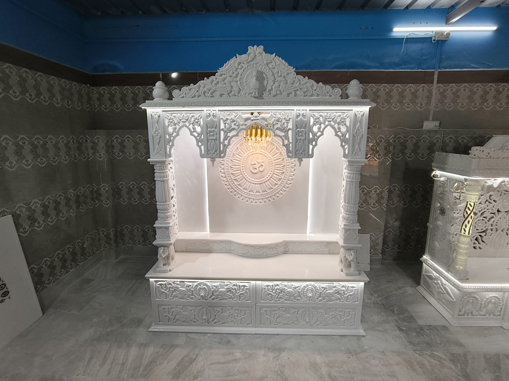 Our marble temples are crafted using premium-quality white marble and natural stones, carefully selected for strength, shine, and longevity. Every mandir is handcrafted by skilled artisans who specialize in intricate carving, jaali work, domes, pillars, and traditional motifs, ensuring flawless finishing and divine appeal.